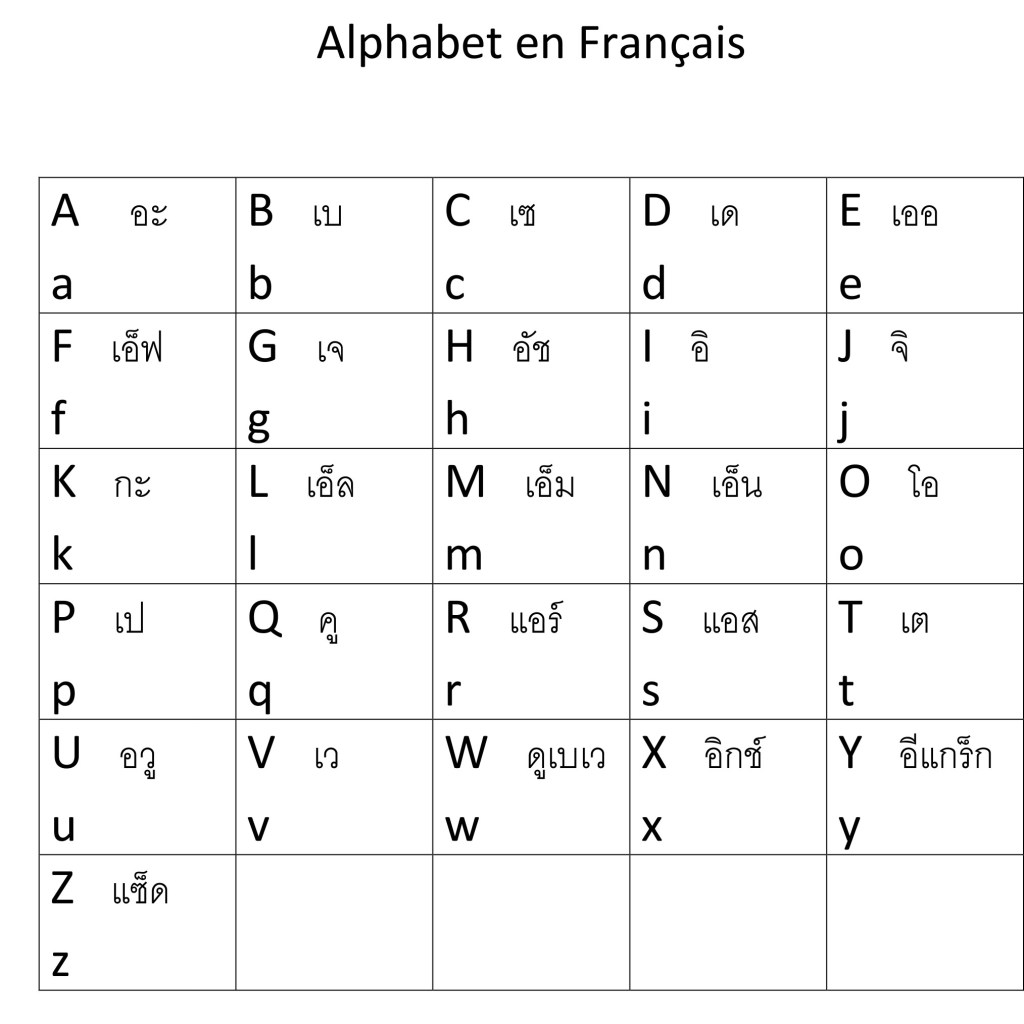 Alphabet avec prononciation pour thaïlandais Share this: Share on X (Opens in new window) X Share on Facebook (Opens in new window) Facebook Like Loading...